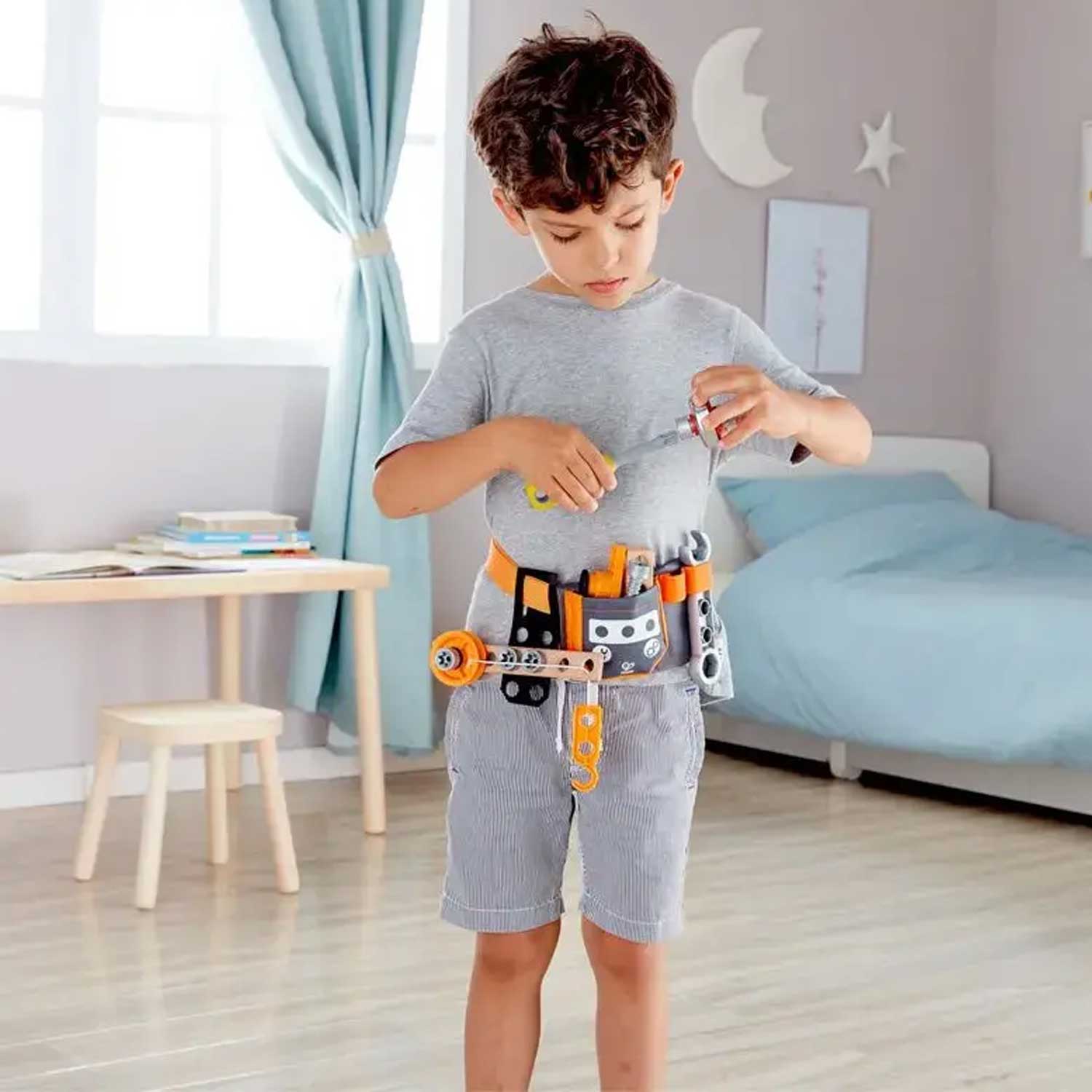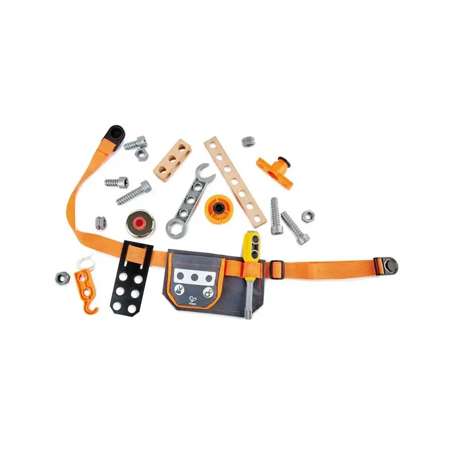Este cinturón de herramientas científicas te permite tener todo lo que necesitas para tus experimentos siempre a mano. Con un bolsillo para herramientas y piezas, ¡puedes construir experimentos directamente en el cinturón! Levanta objetos con la grúa, ajusta tuercas y tornillos con la llave inglesa y avisa a tus amigos con la campana.