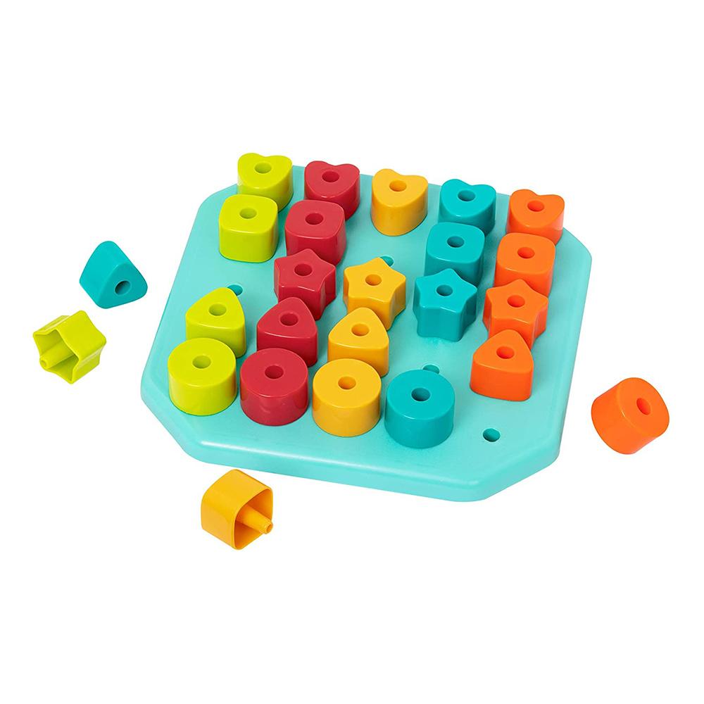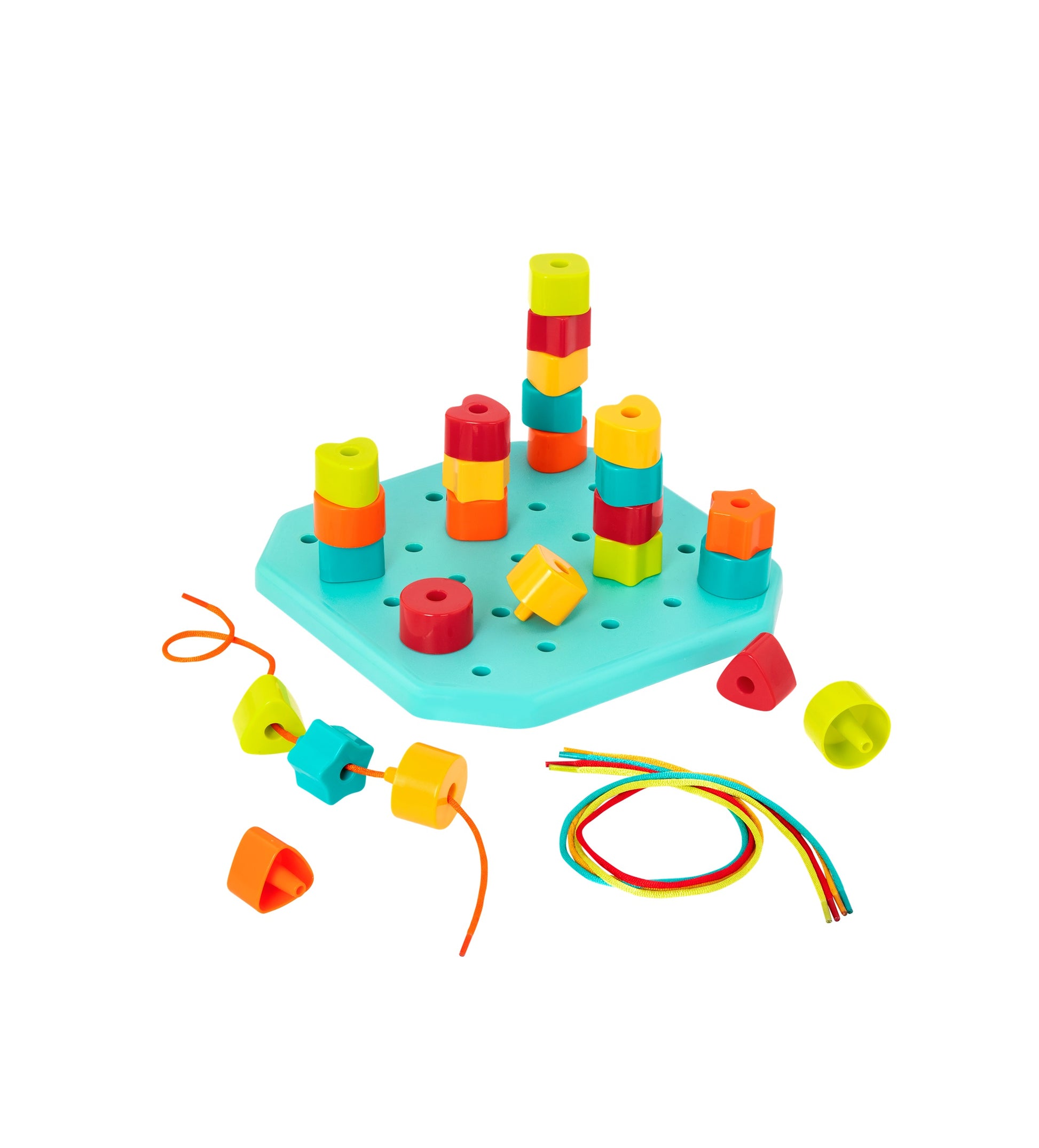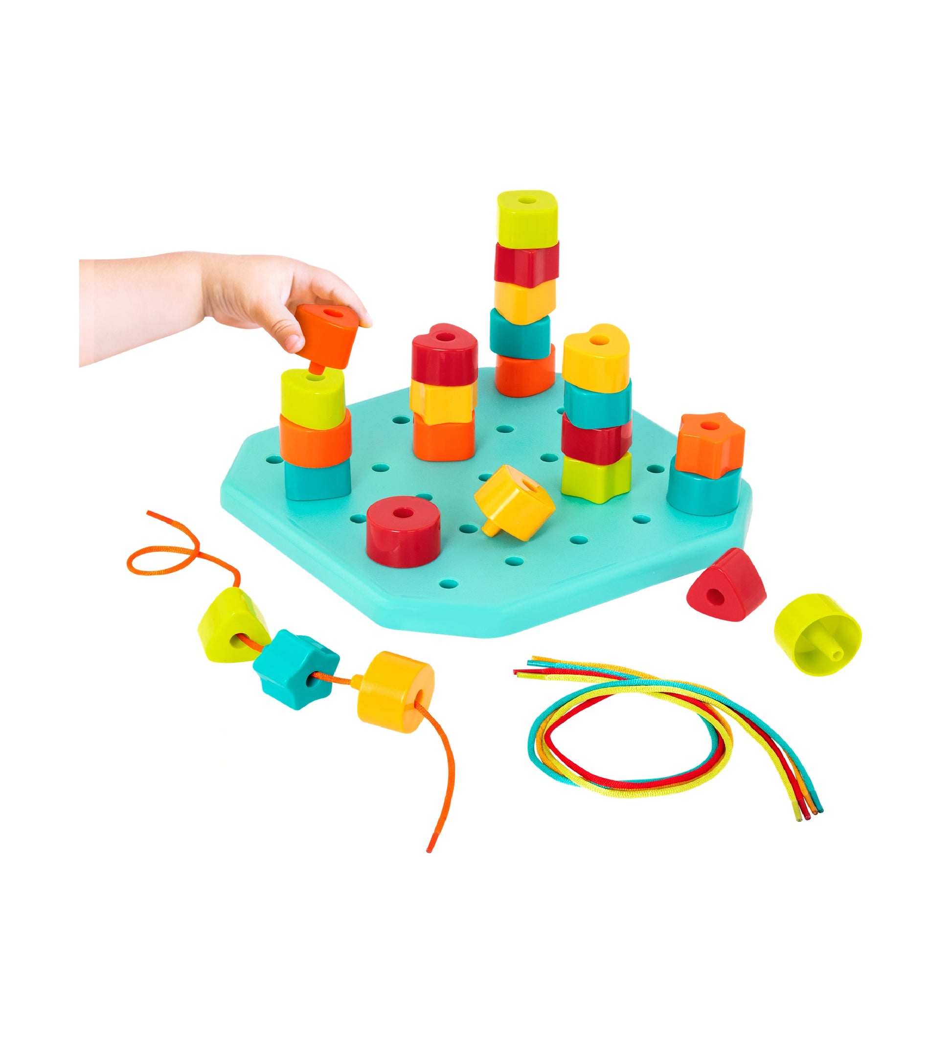 Tu pequeño no se aburrirá de esta tabla. Las oportunidades de juego son ilimitadas con las piezas versátiles de este juguete pegboard. Desarrolla habilidades motoras finas y practica el recuento mientras apilas las clavijas una encima de la otra. Luego, combina colores juntos mientras encajes las clavijas fáciles de agarrar a través de sus cuerdas correspondientes. Las manos ocupadas significan desarrollar mentes tan apilar, ordenar y encaje.