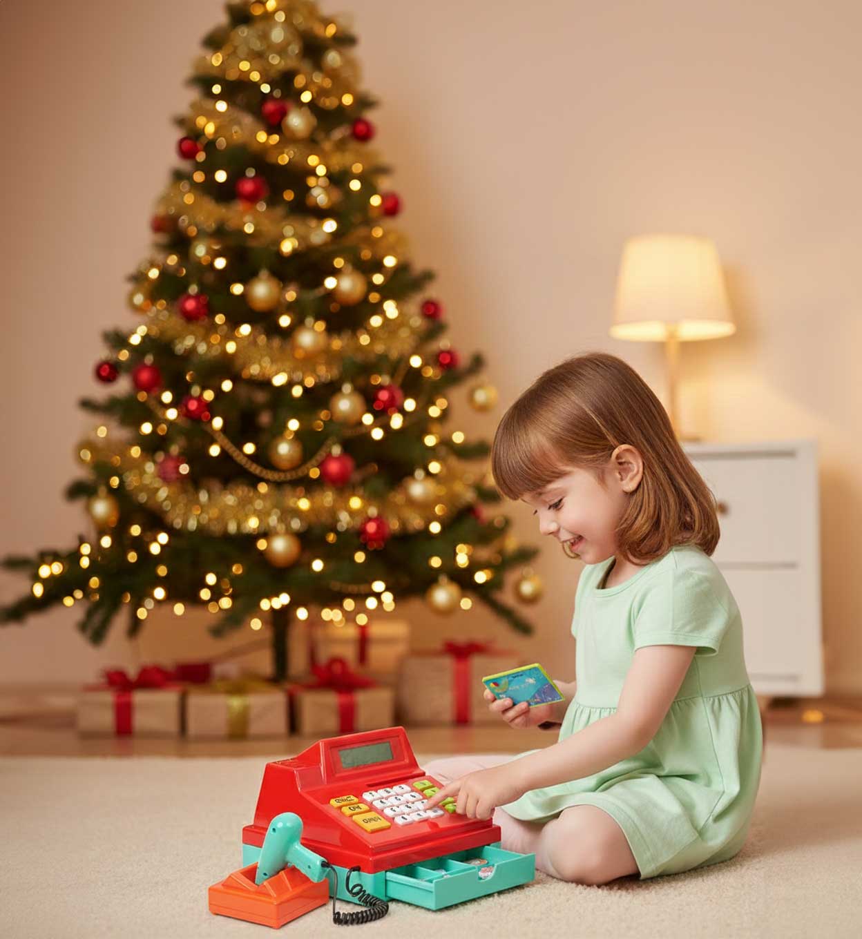 La caja registradora viene con toneladas de accesorios y características realistas para horas de juego imaginativo. Primero, tu hijo puede hacer sonar todos sus juguetes con el escáner de juego con pitido real. Luego, pueden sumar el total en la calculadora funcional. Por último, es hora de pagar: este juego viene con una tarjeta de crédito, monedas y facturas de juguete para que tu hijo practique el manejo del dinero. Hay mucho que aprender con esta caja registradora de juguetes. ¡Así que presiona, desliza, recuenta y juega un poco más!