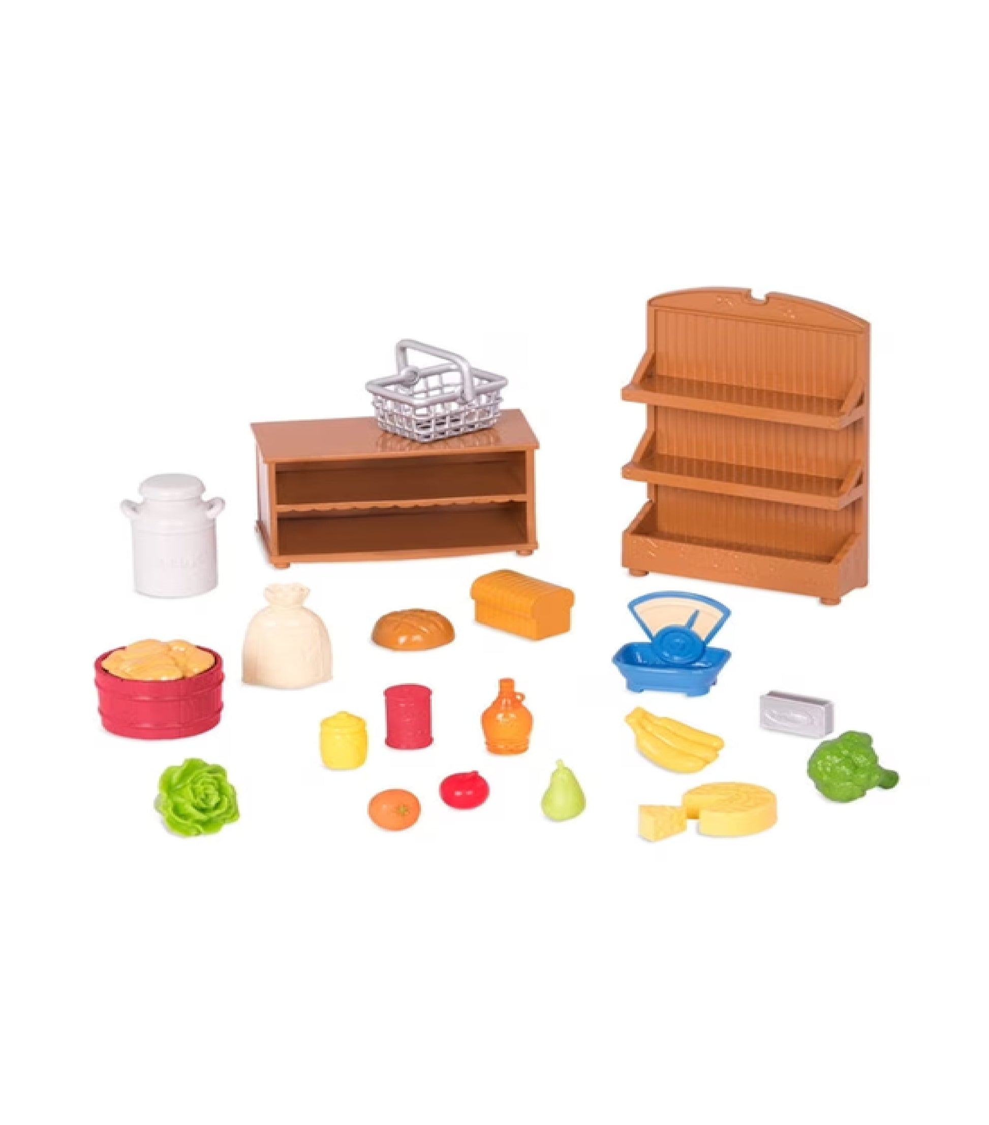 ¡Vamos al Supermercado en Honeysuckle! Este juego tiene todo lo que necesitas para crear tu propia tienda imaginaria. Hay muchos comestibles para elegir, incluyendo pan, fruta y queso. ¡¿Qué hará tu Li'l Woodzeez para cenar esta noche?! Este juego también viene con un mostrador en miniatura para que sus pequeños amigos puedan hacer sus compras, así como una báscula de alimentos, jarra de leche y mucho más. ¡Recoge una cesta y dirígete a comprar con tus amigos peludos hoy!