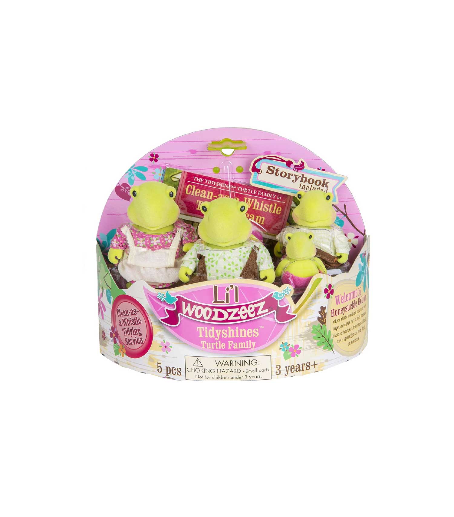 ¡Conoce a la familia de tortugas de Honeysuckle Hollow! Este set familiar incluye cuatro personajes de animales para agregar a tu colección de Li'l Woodzeez: Mamá Sally, Papá Suds y los niños Buster y Bubbles. Las tortugas son conocidas por sus talentos especiales de limpieza, dando vueltas en sus patines hasta que todo esté listo. Estas mini figurillas tienen un pelaje suave y caben en las manos más pequeñas. Sus atuendos son compatibles con los otros personajes animales de Honeysuckle Hollow, ¡así que puedes mezclar y combinar para una divertida sesión de prueba! También puede mover sus cabezas, brazos y piernas, perfecto para horas de juego. ¡Todo lo que necesitan es un poco de imaginación para cobrar vida! Los objetos de colección Li'l Woodzeez se recomiendan para niños de 3 años o más. Los juegos y otros accesorios se venden por separado.