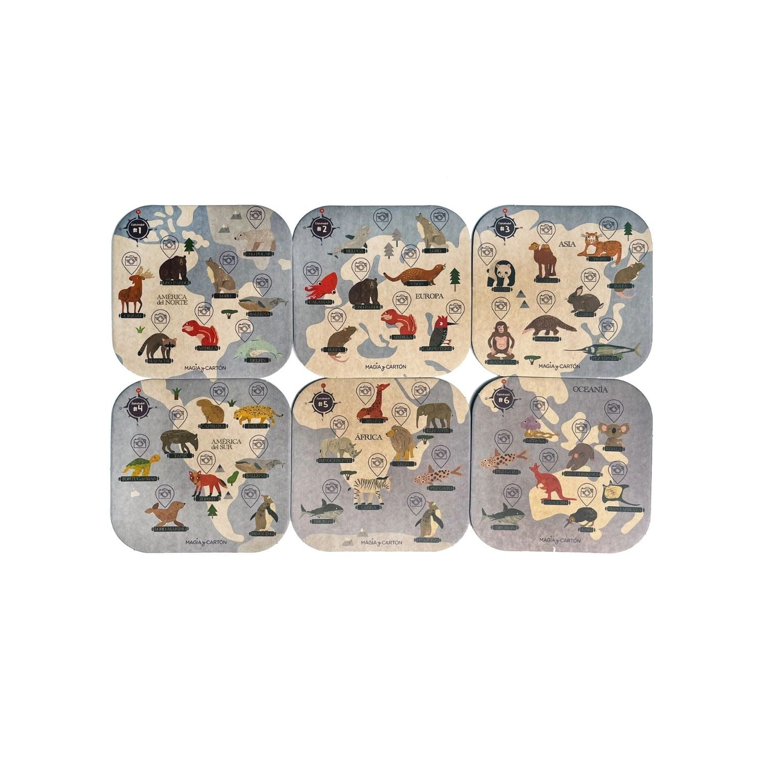 - 6 tableros que forman un mapamundi