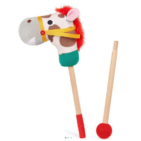 Conoce a tu nuevo Pony Pal, ¡una nueva versión del clásico caballo aficionado! Con un bastón de equitación de madera, una bonita cabeza de felpa y riendas resistentes, este amigable pony está listo para galopar después de aventuras imaginativas. Las piernas de los niños impulsan al Pony Pal para un juego activo, y los sonidos realistas de los gemidos y galopantes añaden un toque de magia al paseo. Simplemente presiona el botón detrás de la oreja derecha del caballo. Los niños pueden explorar diferentes telas texturizadas en su caballo, y una bola roja brillante en la parte inferior del bastón de montar mantiene todo seguro y funcionando sin problemas. ¡Es hora de marearse! Hecho de materiales duraderos y sin preocupaciones
