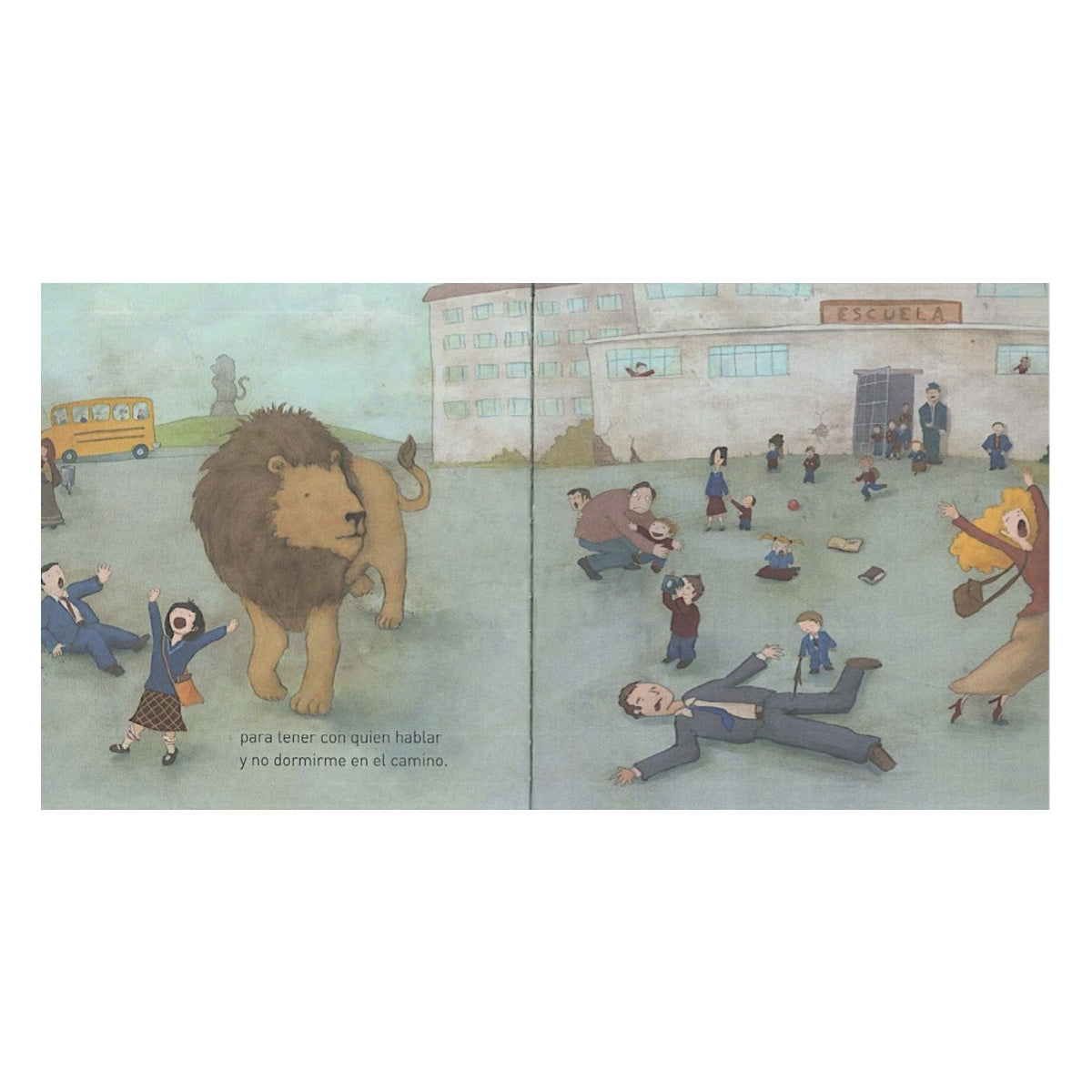 Un álbum ilustrado donde la fantasía encubre la nostalgia y aborda, con imaginación y ternura, un tema difícil: la ausencia del padre. Una niña pequeña pide a un león que la acompañe en su vida diaria, y al hacerlo compartirá con ella pobreza, tareas domésticas y la ausencia del padre. El león imaginario, símbolo de fuerza y protección dará a la pequeña esa compañía paterna.