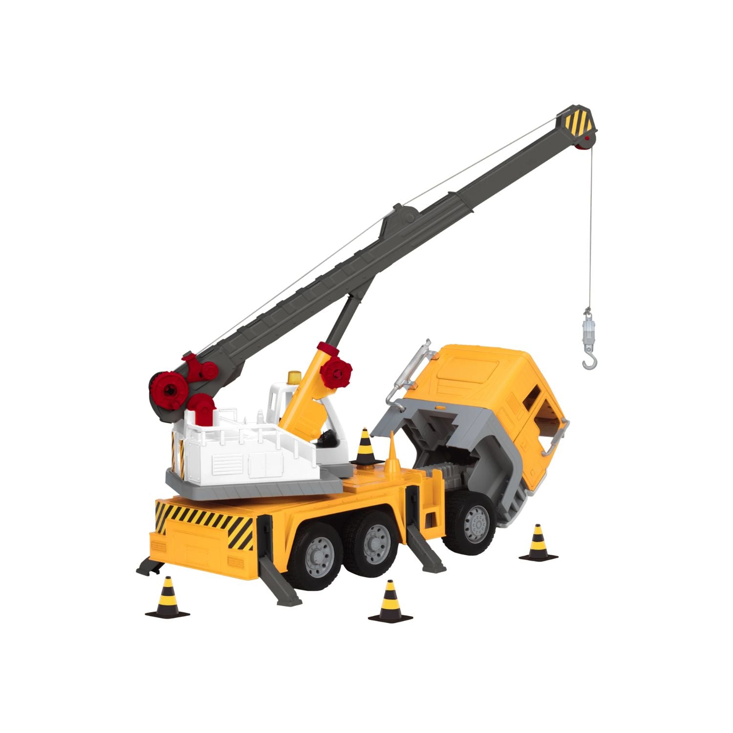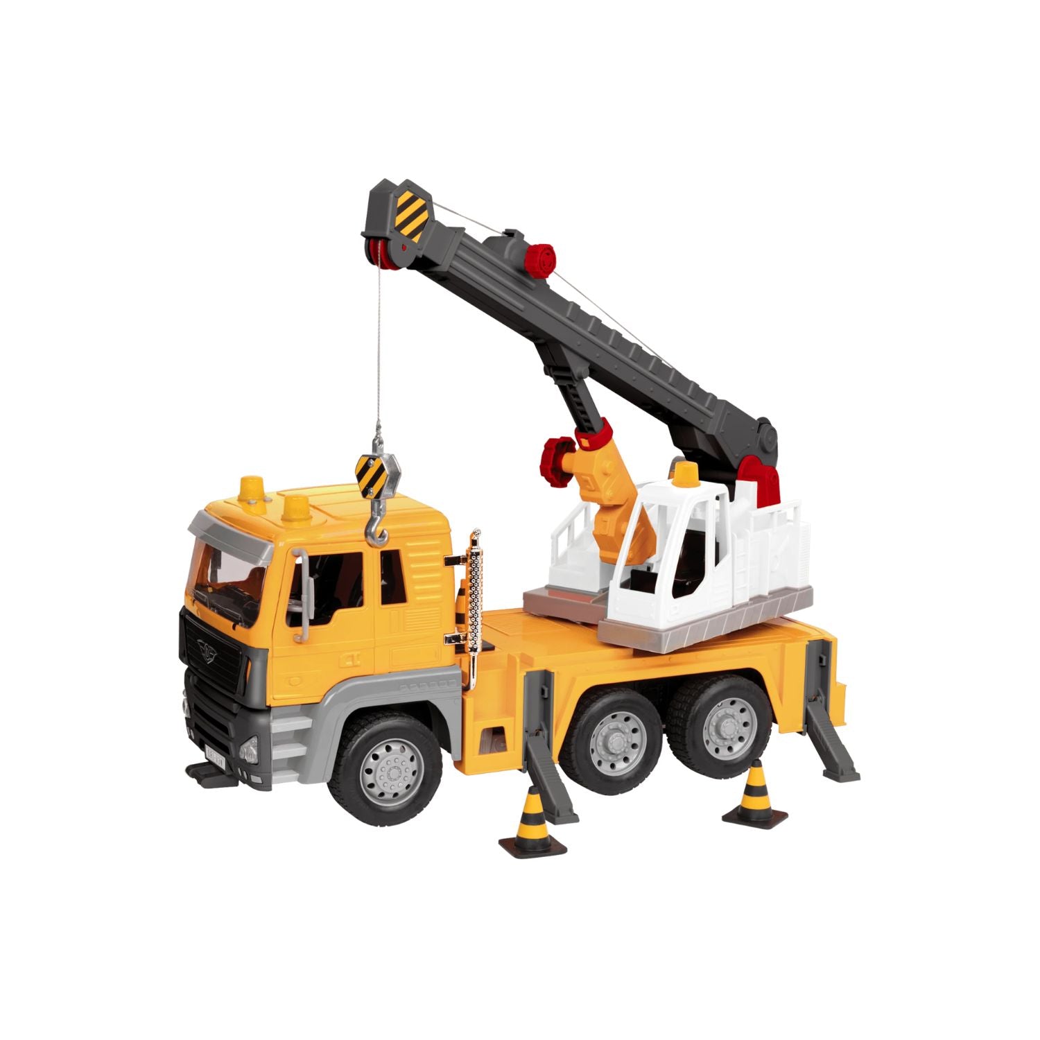 El brazo de grúa extensible con rotación de 360° y gancho que realmente levanta objetos hace que este camión sea un juguete funcional real, no solo decorativo. Las puertas que abren para mostrar un interior detallado con asiento y volante lo elevan a un nivel de autenticidad que los camiones de juguete estándar no alcanzan.