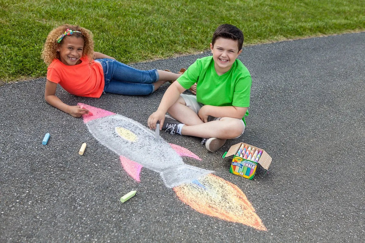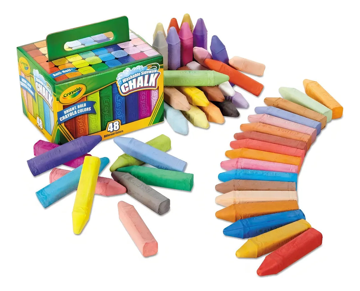 Esta caja contiene 48 tizas lavables ideales para colorear al aire libre. Fáciles de limpiar, se lavan solamente con agua. Producto no tóxico.