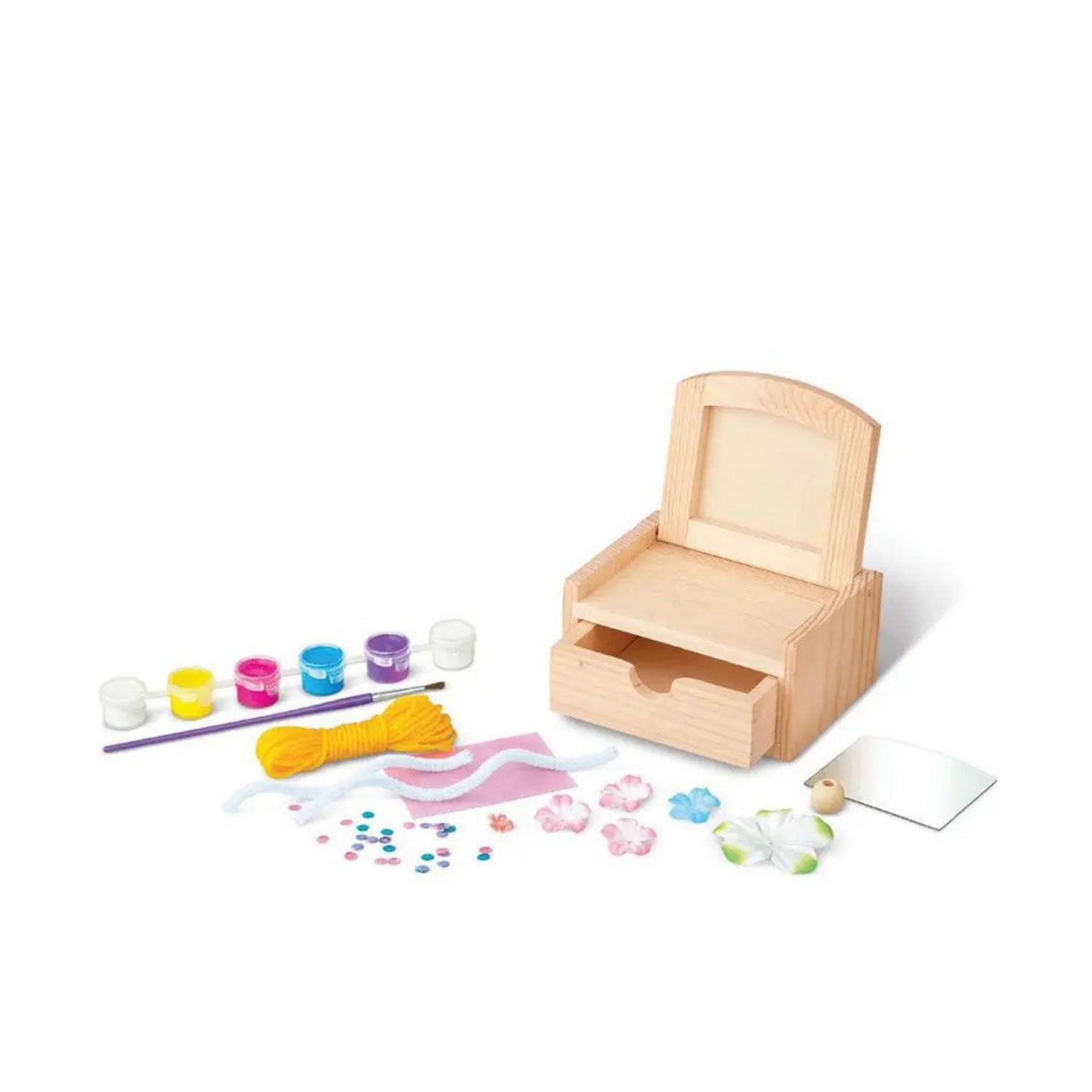 Decora y pinta tu propio joyero de hadas con el set Diseña Joyero 4M. Esta hermosa cajita de madera con espejo se convierte en un proyecto creativo completo: incluye pinturas y pincel, calcomanías mágicas y cinta de espuma adhesiva para personalizar cada detalle. Ideal para decorar y luego guardar tesoros. Recomendada para niños desde 8 años, ¡una manualidad divertida que también sirve como joyero!