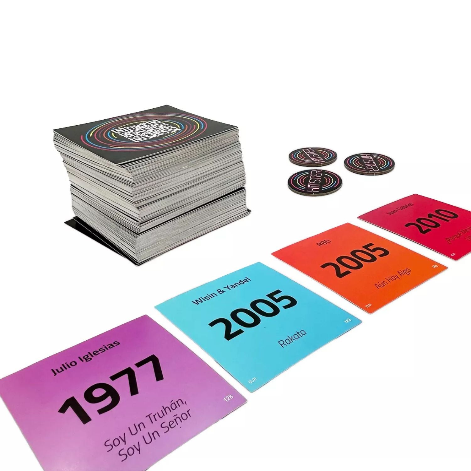 Prepárate para la fiesta con Hitster Latino, el juego que convierte cualquier reunión en una pista de baile llena de risas, ritmo y recuerdos! 🎶 Esta edición incluye 300 cartas con los mayores éxitos de la música latina —desde clásicos inolvidables hasta los hits más recientes—, 37 fichas para potenciar la competencia y un manual de reglas fácil de seguir. Cada carta cuenta con un código QR que, al escanearlo con la app gratuita de Hitster, reproduce la canción en Spotify para que adivines su año y la coloques en tu línea de tiempo musical. Ideal para 2 a 10 jugadores y recomendado desde los 16 años, ofrece partidas rápidas de unos 30 minutos llenas de emoción. ¡Canta, baila y demuestra quién tiene el mejor oído latino con Hitster Latino! 💃🕺
