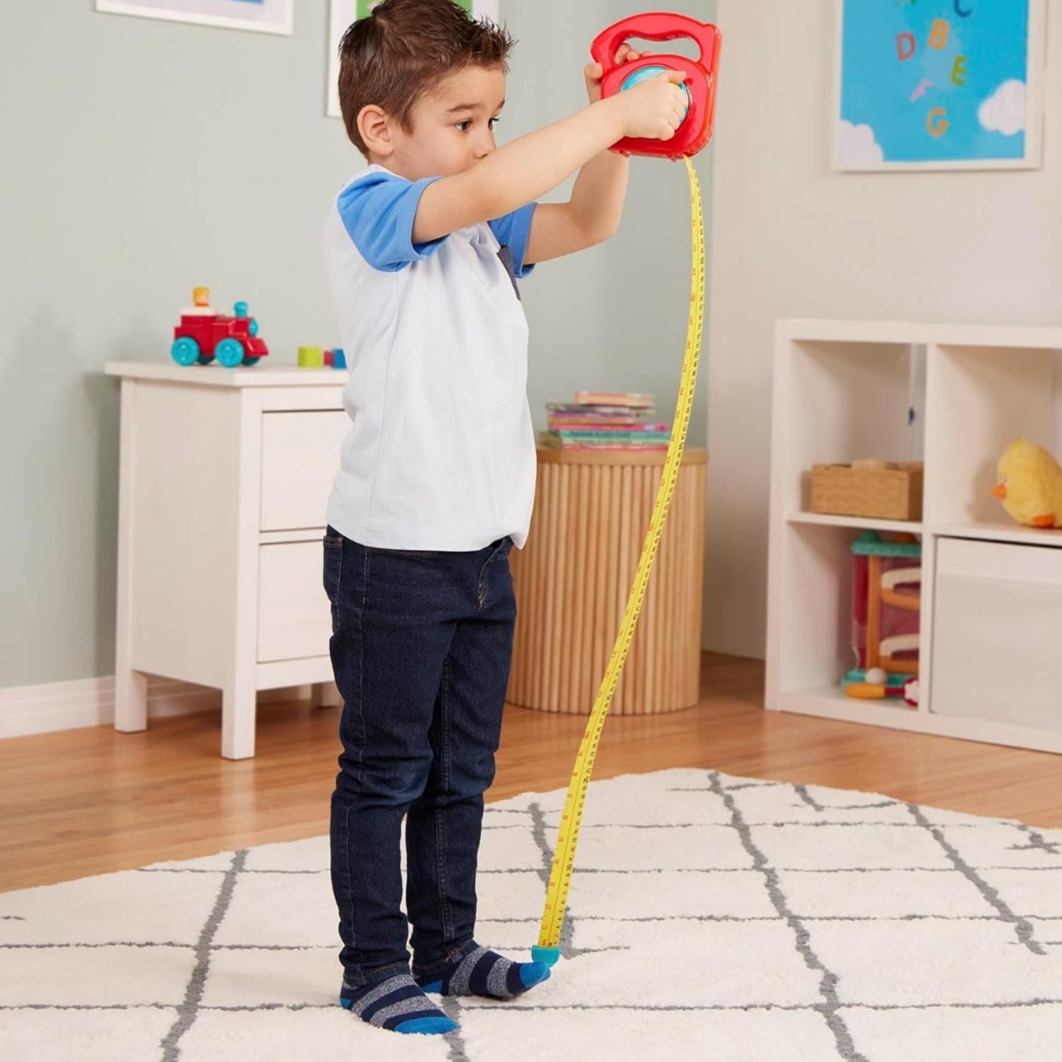 ¡Mide el mundo de la imaginación! Esta cinta métrica de gran tamaño es el accesorio perfecto para los juegos de roles. Los pequeños pueden medir la altura de sus juguetes, la longitud de la mesa o cualquier cosa que se les ocurra. Es una herramienta divertida para aprender sobre el concepto de las medidas mientras se divierten. ¡El juego de la precisión nunca fue tan emocionante!