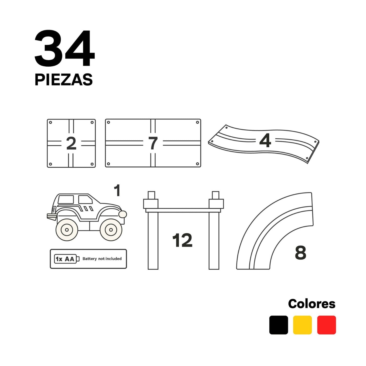 ¡Lleva la emoción de las carreras a casa con el Set Imanix Race Tracks de 34 piezas! Este completo circuito combina velocidad, creatividad y aprendizaje en un solo juego, ideal para niños y niñas. Con su elegante diseño en negro y piezas versátiles, permite armar distintas configuraciones de pista que estimulan la coordinación, la destreza manual y la imaginación. Incluye 7 rectas, 2 cuadrados, 8 curvas, 6 pilares amarillos, 6 pilares rojos, 4 slides y 1 auto para vivir horas de diversión sin límites. ¡Prepárate para construir, competir y dejar volar la creatividad!