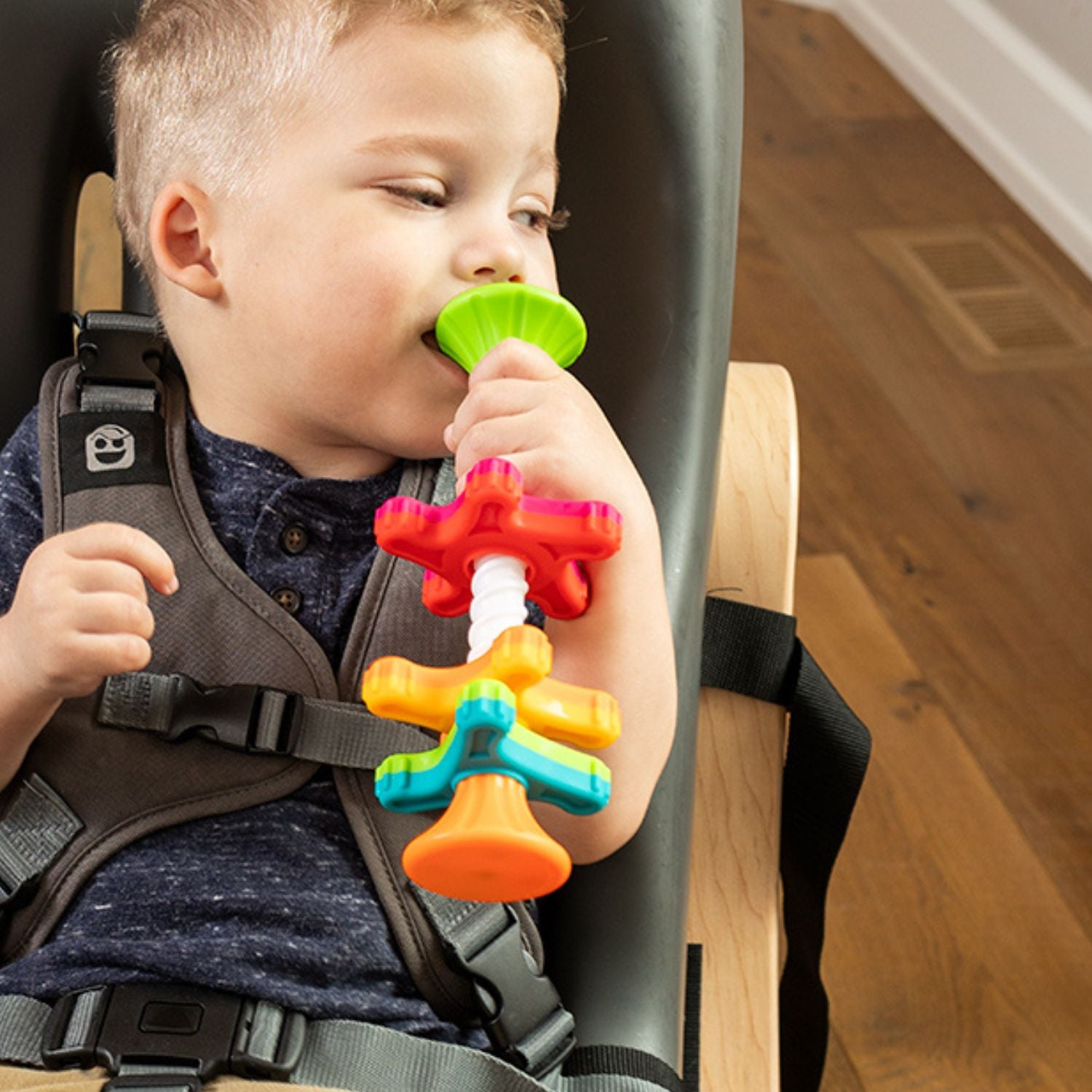 Entretenido Juguete sensorial perfecto para viajar, bañarse o usarlo en cualquier momento. Tiene 3 hélices que giran en el tubo con rosca, y van girando de un lado a otro, según lo vayas moviendo. Las hélices tienen diferentes colores, diferente número de extremidades y diferentes texturas, lo que lo hace perfecto para también practicar colores y contar las extremidades de cada hélice. Fomenta la exploración sensorial, las habilidades motoras finas, la coordinación ojo-mano, el conteo temprano y el reconocimiento de colores. ¡Estimula y fortalece los cerebros en crecimiento!