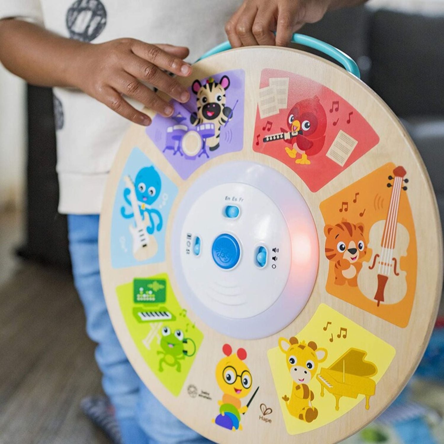 ¡Despierta el genio musical de tu pequeño con la Sinfonía Magic Touch de Baby Einstein! 🎵 Este innovador juguete combina la calidez de la madera clásica con la tecnología táctil más avanzada: ¡sin botones ni teclas, solo basta un suave toque para crear magia! 🪄 Con 3 modos de juego (Instrumentos, Colores/Animales y Estilo Libre), tu bebé podrá explorar más de 120 melodías y sonidos mientras descubre el mundo en tres idiomas (inglés, español y francés). 🌍 Es perfecto para fomentar la motricidad fina y la creatividad, permitiendo que los pequeños compositores mezclen capas musicales o aprendan a identificar a sus animales favoritos. 🐯🎹 ¡Un escenario de aprendizaje interactivo y duradero que crecerá con ellos desde el suelo hasta la mesa! ✨
