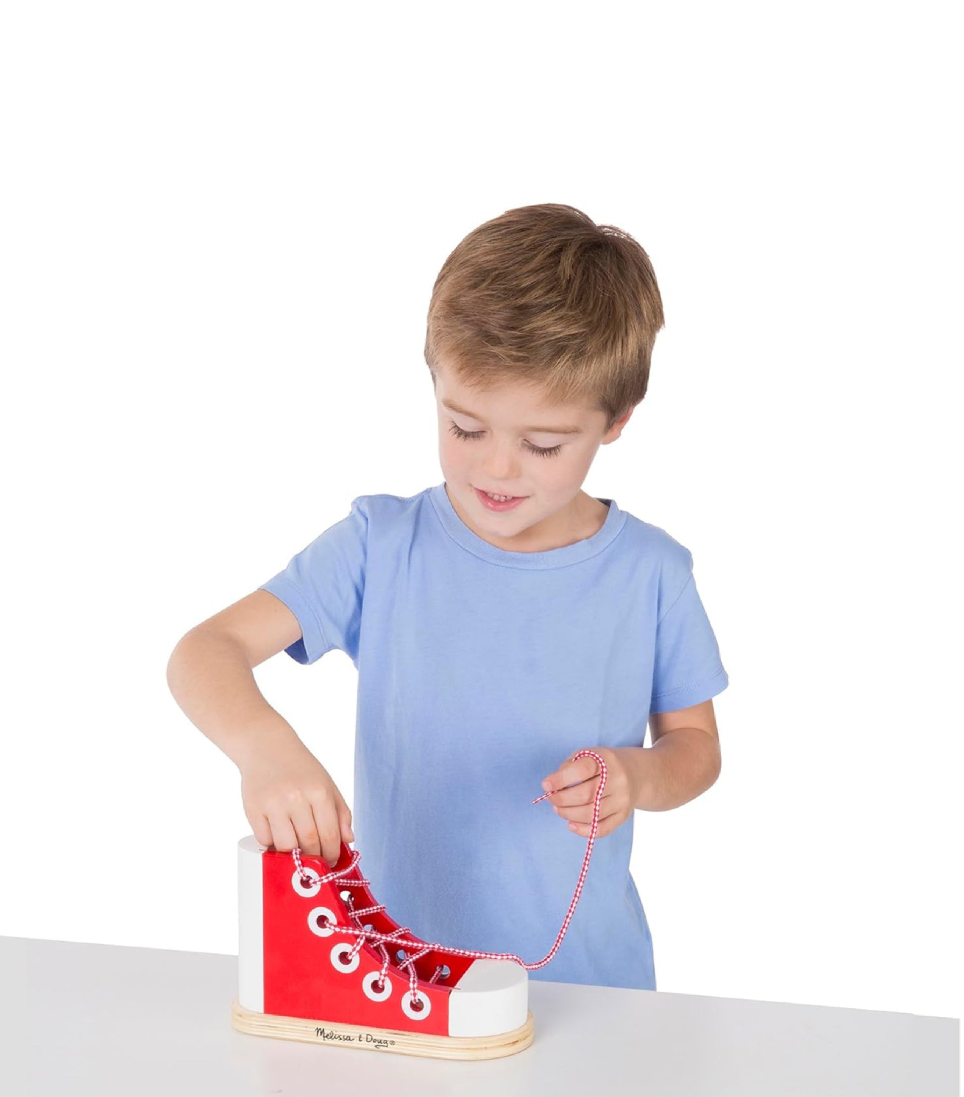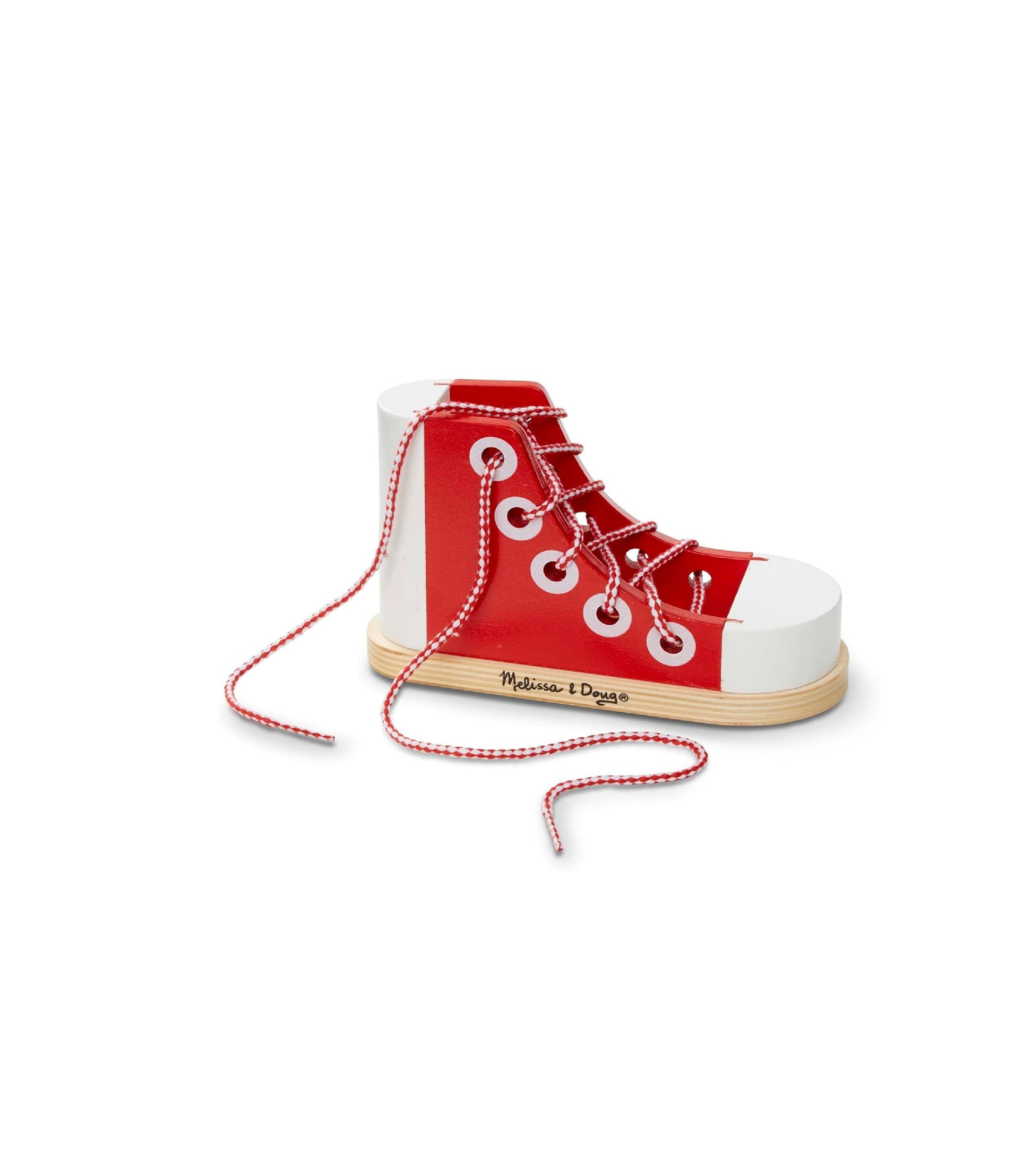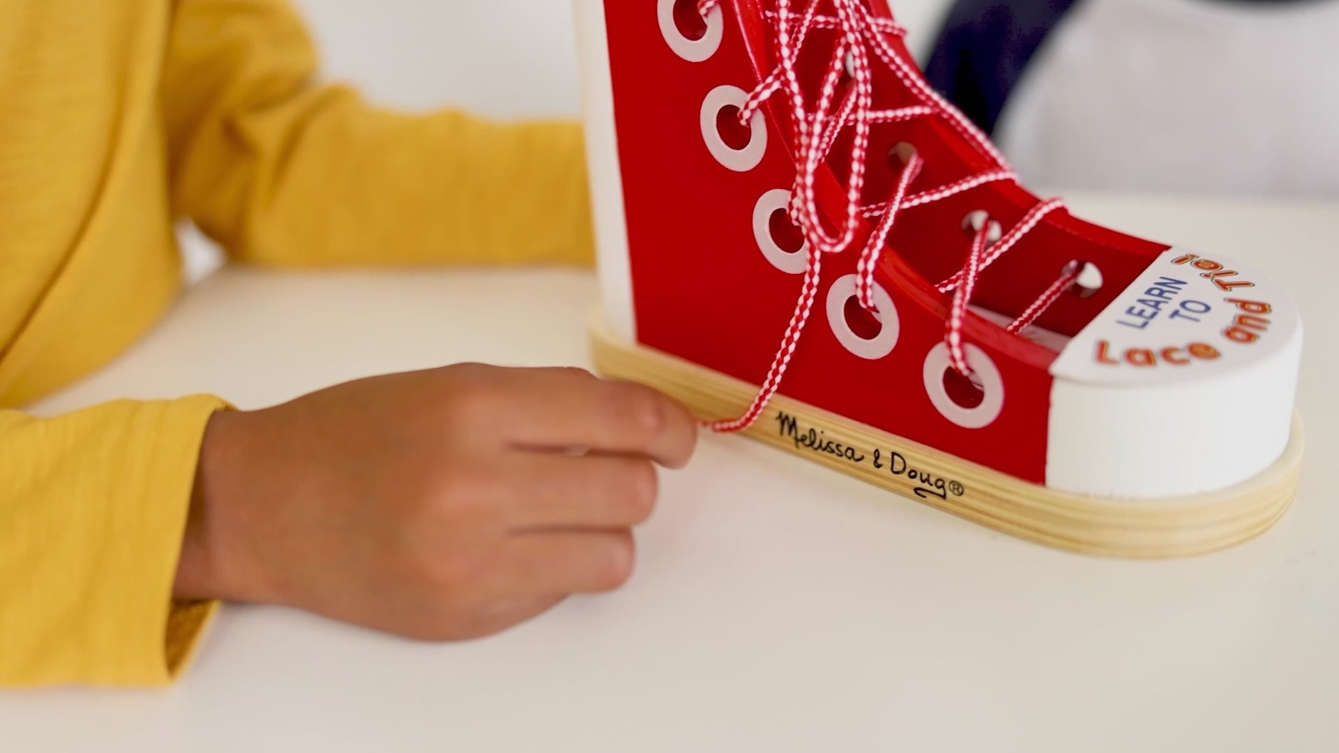 ¡Puedo hacerlo yo solo! Este zapato de madera es ideal para que los niños practiquen y aprendan a abrocharse los cordones.