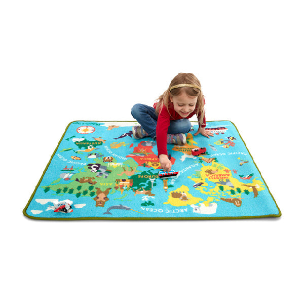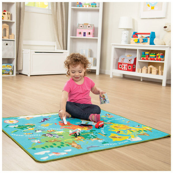 ¡Viaja por el mundo y aprende sobre los diferentes lugares con esta alfombra de juego de 99 cm x 91 cm! Este mapa del mundo muestra los diferentes continentes y océanos, los animales nativos de cada lugar, puntos de interés y una rosa de los vientos. Para mayor seguridad, la alfombra cuenta con antideslizante y es lavable a máquina.