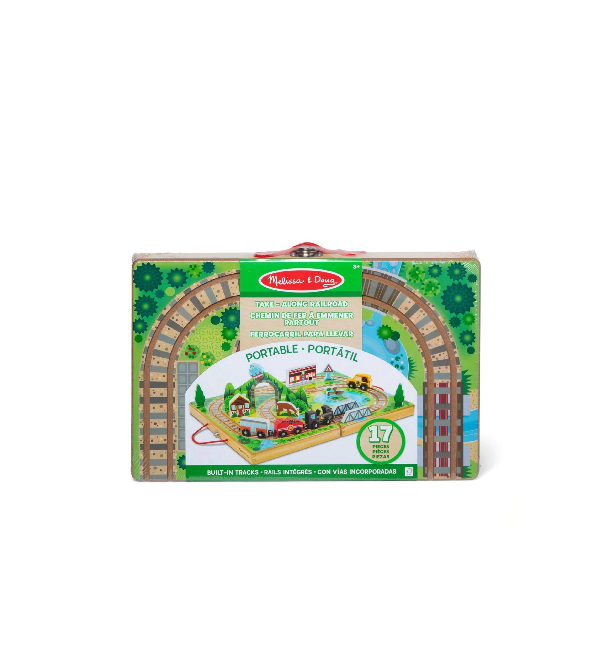¡Para llevar a todas partes! Esta maleta se abre para crear una superficie de juego. Construye una verdadera línea de tren con este set que contiene 4 vehículos, un túnel, un puente, edificios y señales de cruce. Incluye 17 piezas en total.