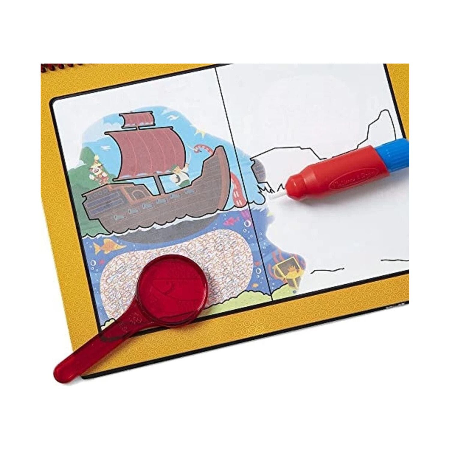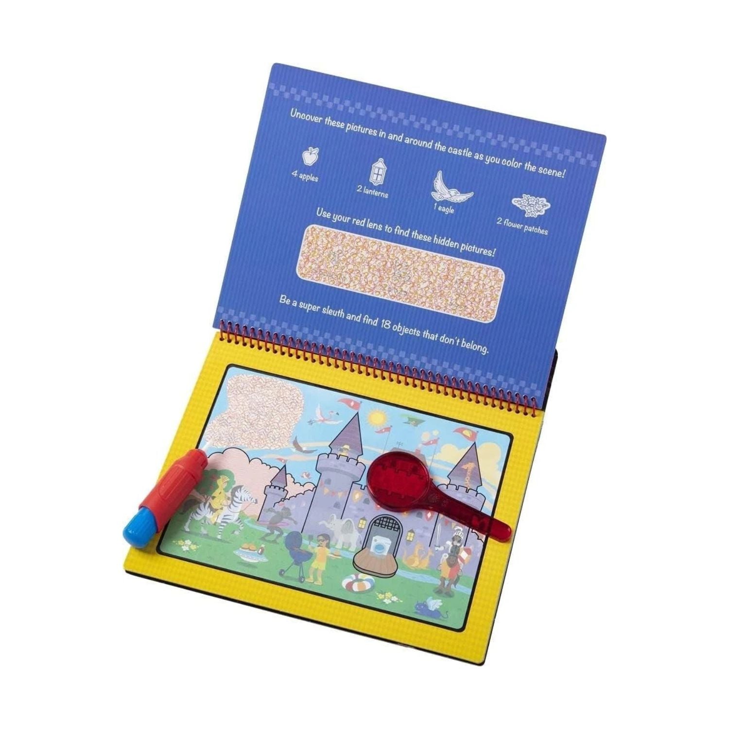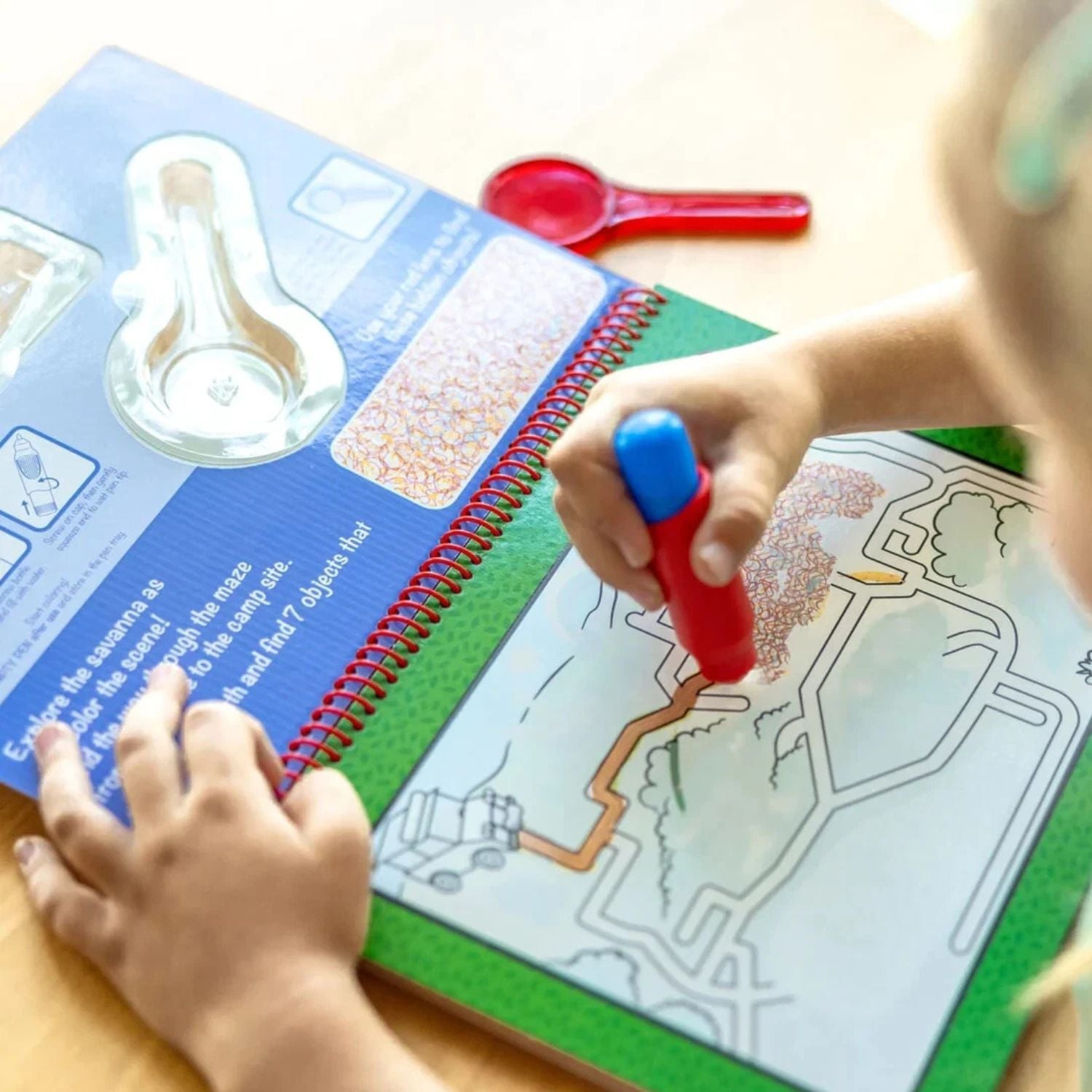¡Con este juguete los niños podrán pintar sin ensuciar! Contiene un libro con ocho páginas reutilizables, un lápiz que se recarga con agua y una lupa para poder observar las figuras de cerca. Sólo utiliza el lápiz para pintar cada escena. ¡Los detalles y los colores aparecen con cada trazo! Luego, deja que la imagen se seque para poder pintarla una y otra vez. El lápiz tiene un diseño especial que hace que sea fácil de sujetar para los niños y la lupa permite descubrir detalles en las imágenes.