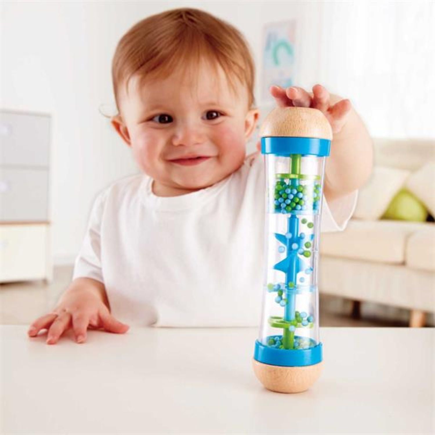 ¡Lleva la calma de la lluvia a las manos de tu bebé con el Beaded Raindrops de Hape! 🌧️💙 Este sonajero sensorial está diseñado para imitar el relajante sonido de las gotas de lluvia mientras las cuentas de colores caen a través de los diversos niveles y el molinillo interno. Su forma ergonómica es perfecta para que las manos pequeñas lo sujeten con facilidad, estimulando el desarrollo sensorial y la coordinación motriz desde el primer día. 👶✨ Fabricado con materiales seguros y duraderos, es el compañero ideal para momentos de juego tranquilos o para distraer a tu peque con un espectáculo visual y auditivo fascinante. ¡Un clásico imprescindible que encantará a toda la familia! 🌈🎵