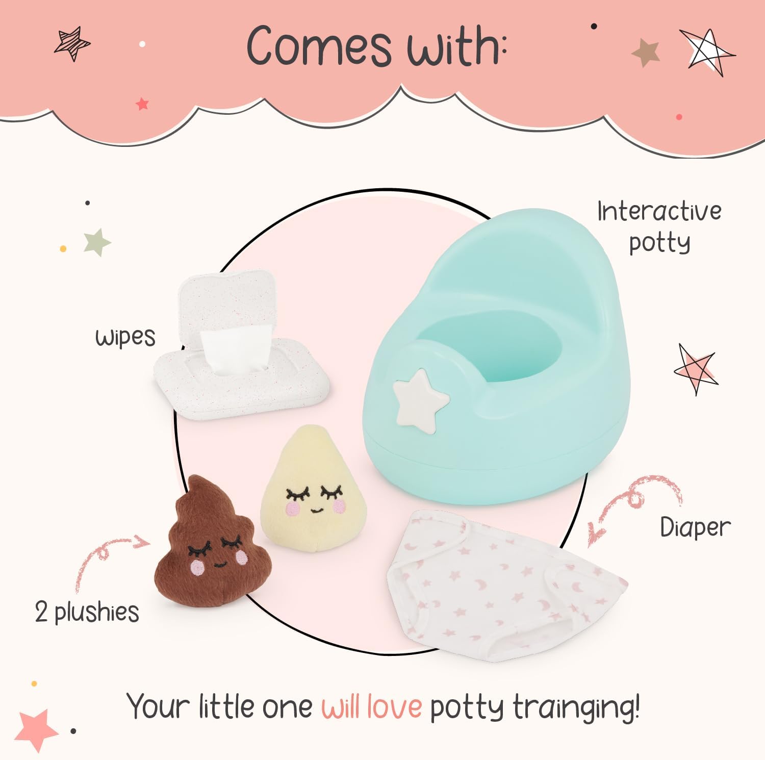 ¡Aprender jugando es más fácil! Este set de accesorios es la manera perfecta de introducir a los niños en el concepto del entrenamiento para ir al baño de una forma divertida y sin presiones. A través del juego, los niños pueden imitar a los adultos y desarrollar importantes habilidades de vida.