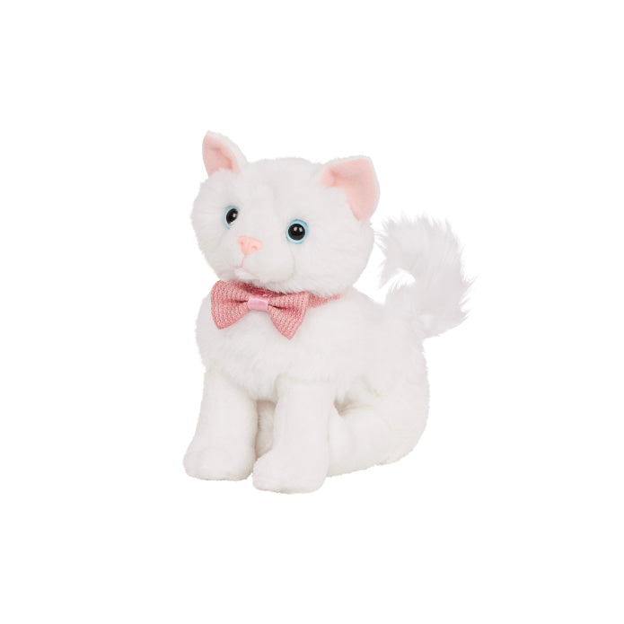 El gatito angora turco de Our Generation es juguetón, tierno y es el compañero perfecto para los amantes de los animales y sus muñecos de 45 cm. Diseñado con detalles específicos de la raza, este gato de peluche de 15 cm tiene un pelaje suave y blanco, ojos azules brillantes, un collar elegante y ¡es articulado! Los niños pueden doblar sus patas para sentarse, estirarse y posar para adaptarse a su estilo de juego. Además, este gato de peluche viene en una caja que se parece a una linda casa para mascotas. ¡Así los más pequeños pueden darle al gatito un lugar acogedor para "dar patitas" y soñar!