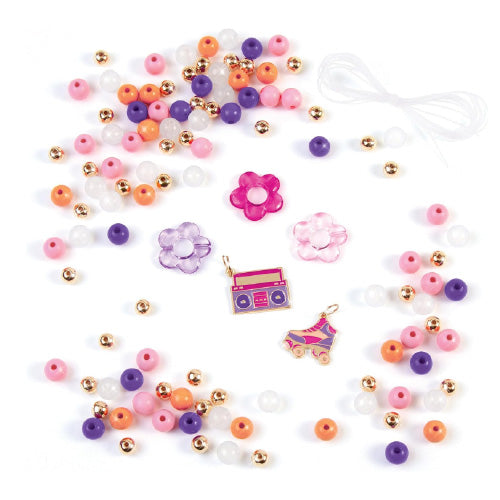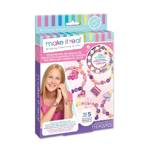 ¡La luz del sol transforma los colores de las cuentas! ¡Crea 5 pulseras de bricolaje y disfruta mientras los colores de las cuentas cambian de blanco a rosa, morado y amarillo! El color se desvanece una vez dentro, pero vuelve a colores vibrantes cada vez que están expuestos a la luz solar natural. Este juego de pulseras DIY es un gran regalo para preadolescentes astutos, ya sea para una fiesta de cumpleaños, unas vacaciones o simplemente porque sí. Perfecto para preadolescentes que buscan ser creativos y explorar su estilo único. Este juego se completa con todo lo necesario para crear las pulseras que revelan el color, incluido cordón, cuentas que cambian de color y variadas, dijes y una PlayTray para un fácil montaje. Para recargar las cuentas que cambian de color, simplemente guárdelas en el congelador durante 5 minutos antes de volver a usarlas.