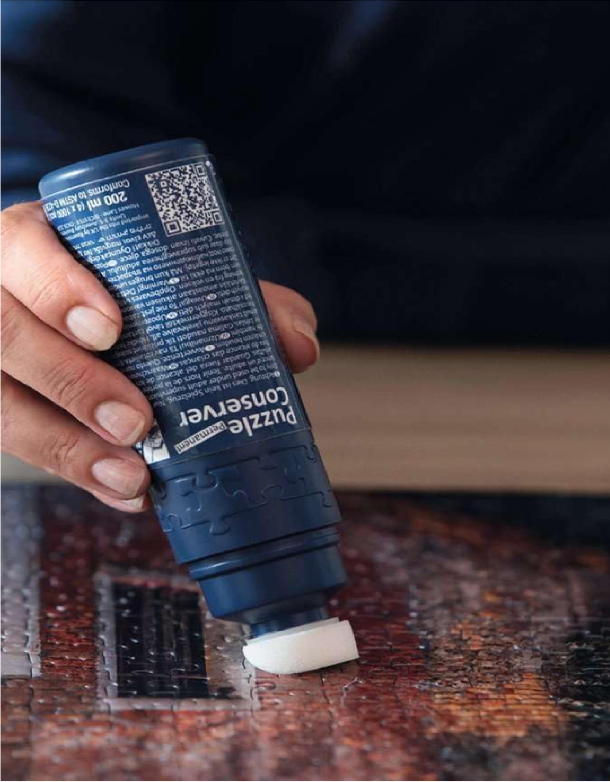 ¿Acabas de terminar un puzzle? Utiliza este pegamento especial para pegar tu rompecabezas. Déjalo secar por una hora y podrás ver cómo las piezas del puzzle se juntan y fijan, para que puedas enmarcar y colgar tu obra maestra en la pared.