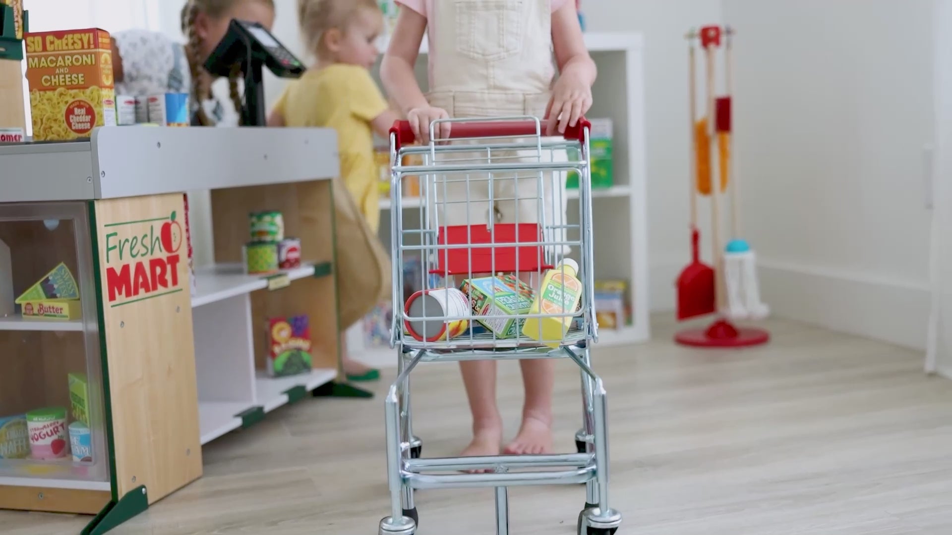 Este lindo carrito de supermercado es el complemento ideal para hacer las compras de la casa igual que la mamá y el papá . Fabricado con metal resistente, cuenta con ruedas que giran con facilidad.