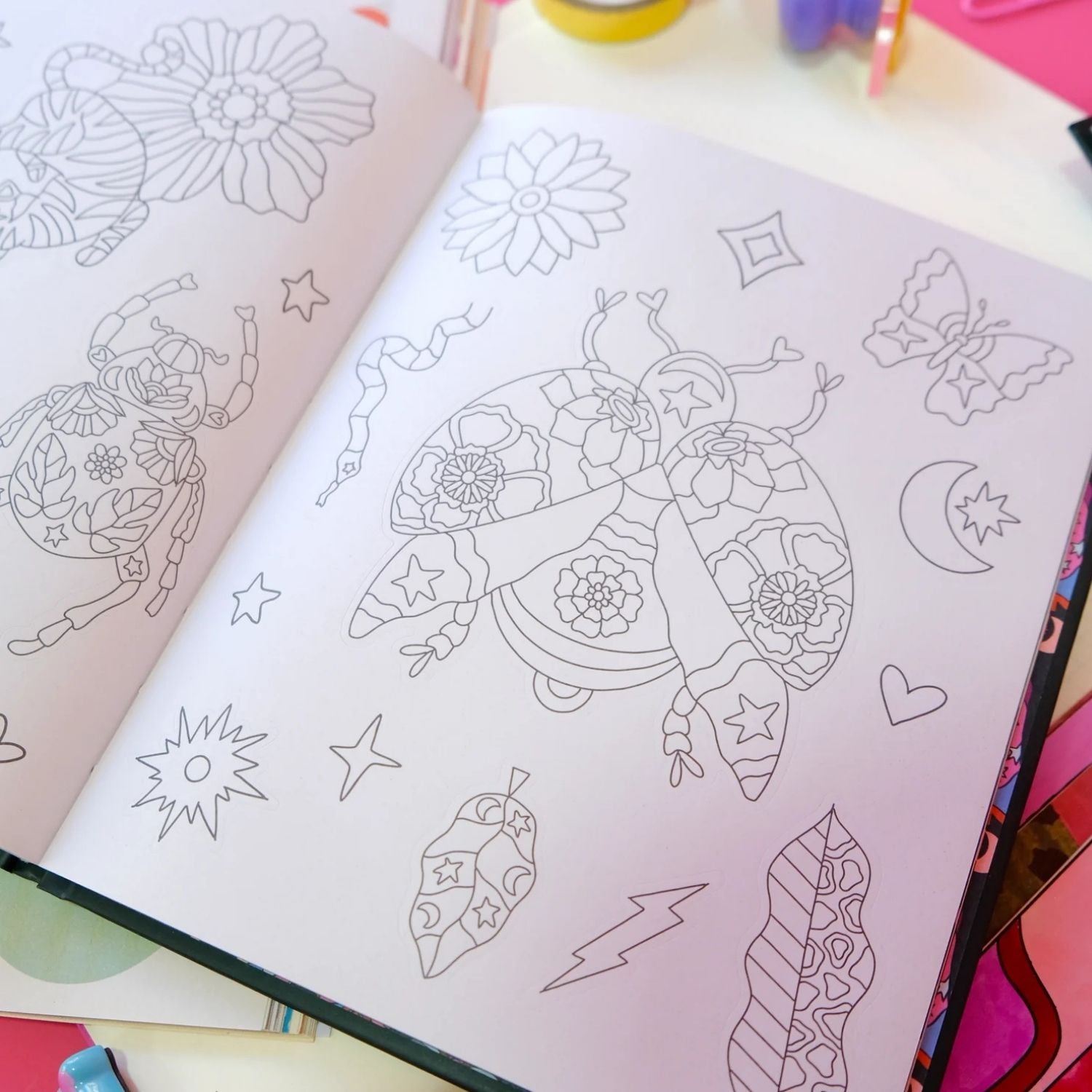 ¡Desata tu creatividad y dale un toque vibrante a tu mundo con el espectacular Sticker Book de Tere Gott! 🎨✨ Este libro no es solo una colección de calcomanías, es una explosión de arte retro-psicodélico diseñada para que personalices desde tu laptop hasta tus cuadernos favoritos. Con ilustraciones icónicas que incluyen botas vaqueras llenas de estilo, mariposas mágicas y elementos cósmicos en colores neón, cada una de sus páginas te invita a crear composiciones únicas y llenas de personalidad. 🦋🌟 Es el accesorio perfecto para quienes creen que "colorear es un sentimiento" y buscan transformar objetos cotidianos en piezas de arte llenas de energía positiva. ¡Haz que cada rincón brille con este tesoro de diseño indispensable! 💖🐍🤠