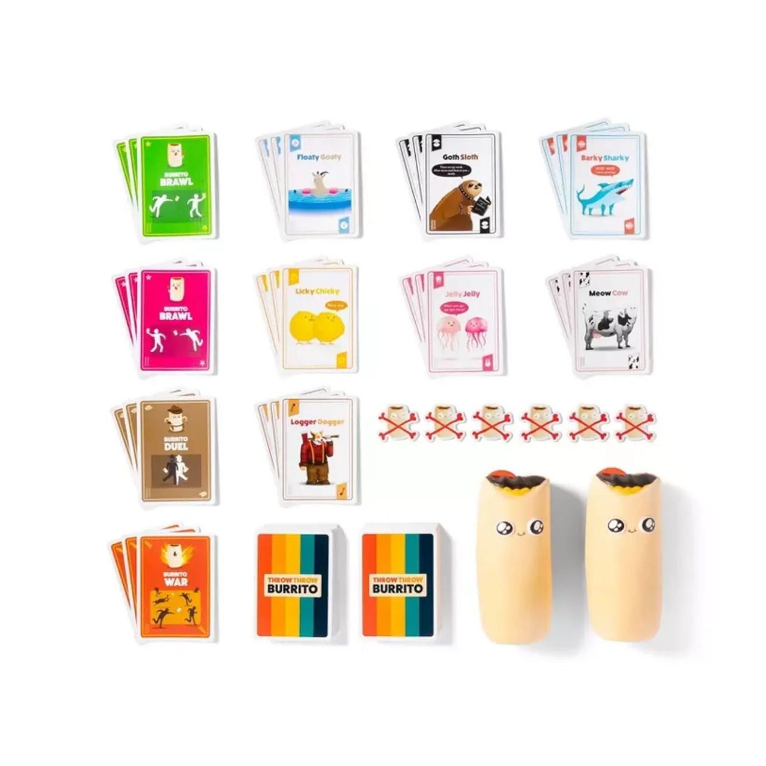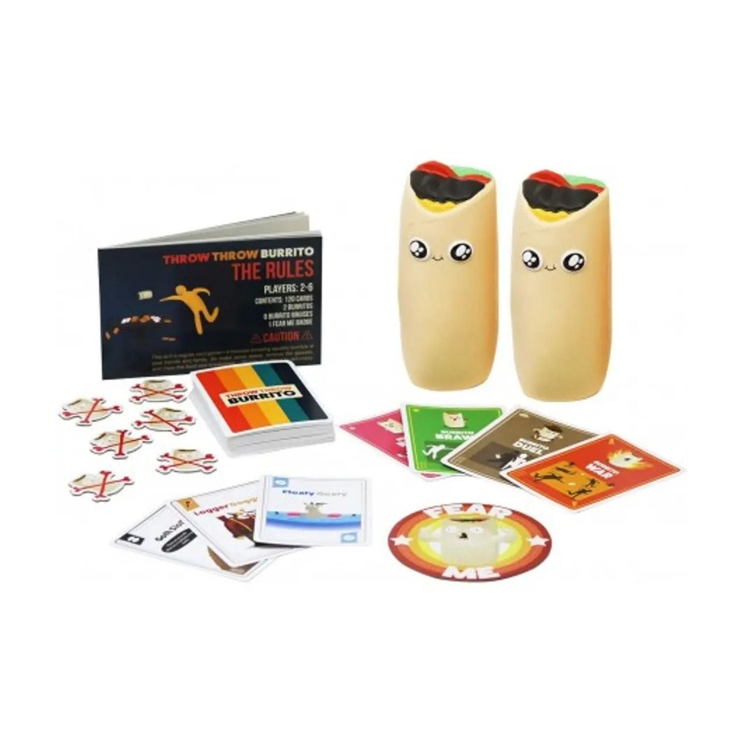 Este es un juego diferente a cualquier otro que hayas jugado antes. Una combinación de juego de cartas y balón prisionero donde los jugadores se enfrentan cara a cara mientras roban cartas, ganan puntos y se tiran Burritos unos a otros.