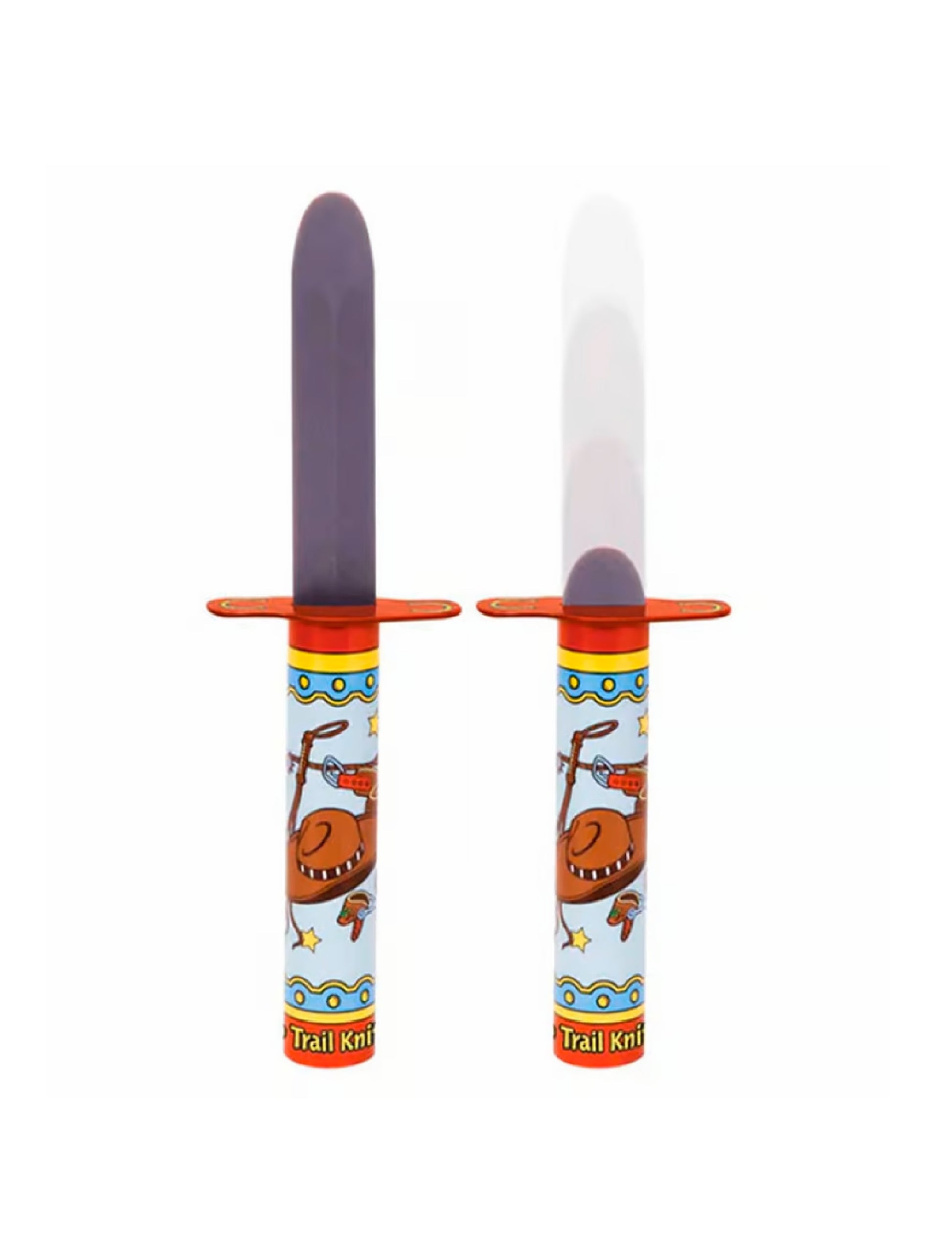 Cuando estés de excursión o en el bosque, ¡no olvides tu cuchillo ! Mango de metal con hoja de resorte de plástico, la hoja entra y sale del mango.